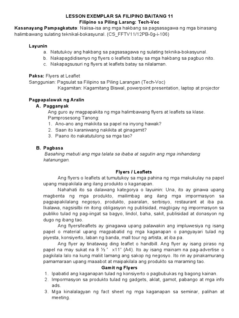 Piling Larang Flyers O Leaflets Lesson Exemplar Pdf